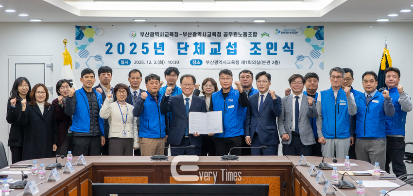 부산교육청은 2일 노동조합 단체교섭요구안 전문 56개조 140개 항에 대한 합의점을 도출하며 공무원노동조합과 단체협약을 체결했다고 밝혔다.
