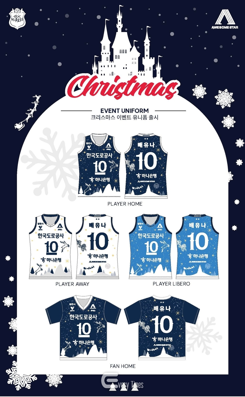 한국도로공사 하이패스 배구단의 공식 스포츠 브랜드 어썸스타(awesome star)는 크리스마스 시즌을 맞아 어센틱 유니폼과 어센틱 반팔 팬유니폼(팬니폼)을 출시했다고 밝혔다.
